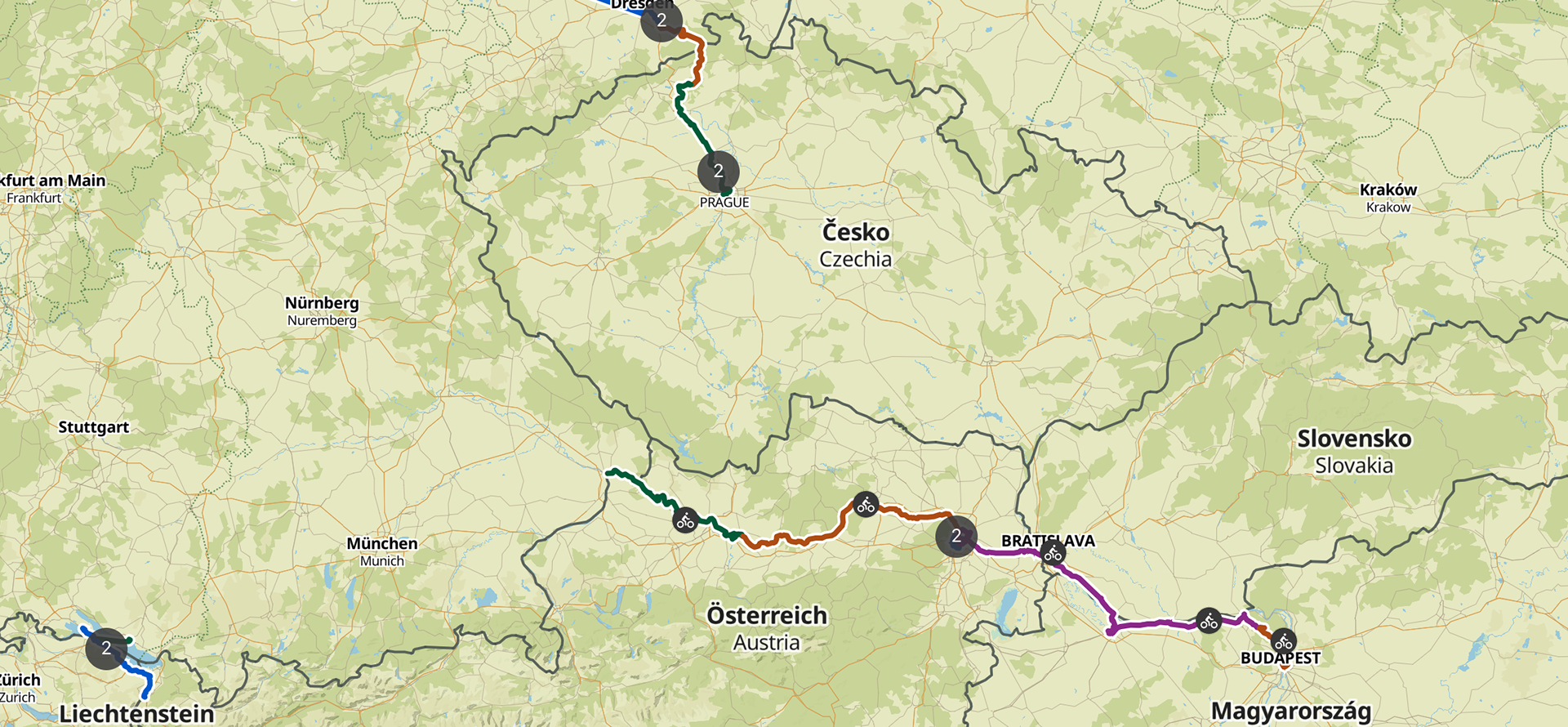 Konstanz-Passau-Wien-Bratislava-Budapest-Prag-Dresden-Leipzig