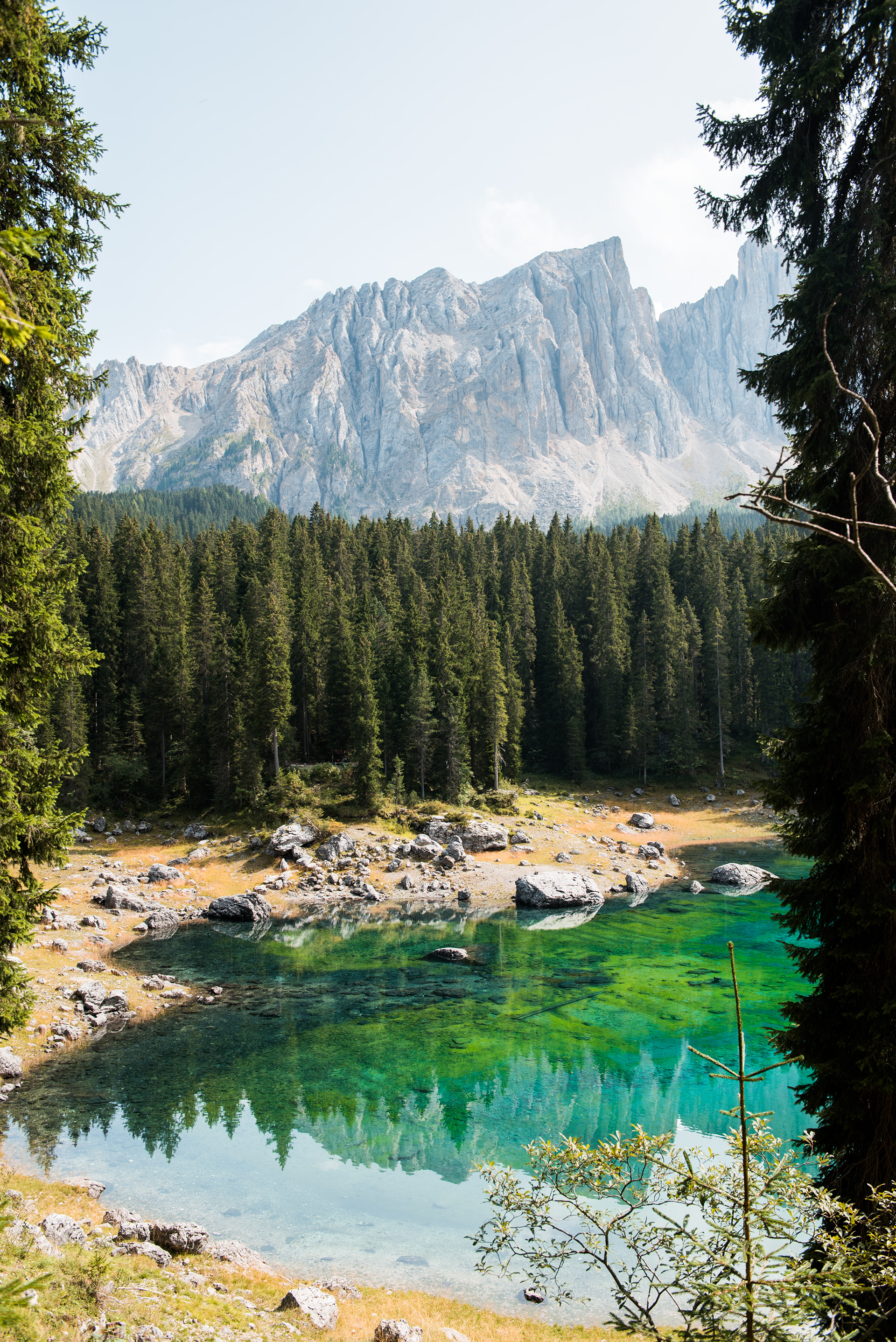 Der Karersee befindet sich unterhalb des Karerpasses am Fuße des Latemarmassivs in Südtirol. Er ist ein geschütztes Naturdenkmal.