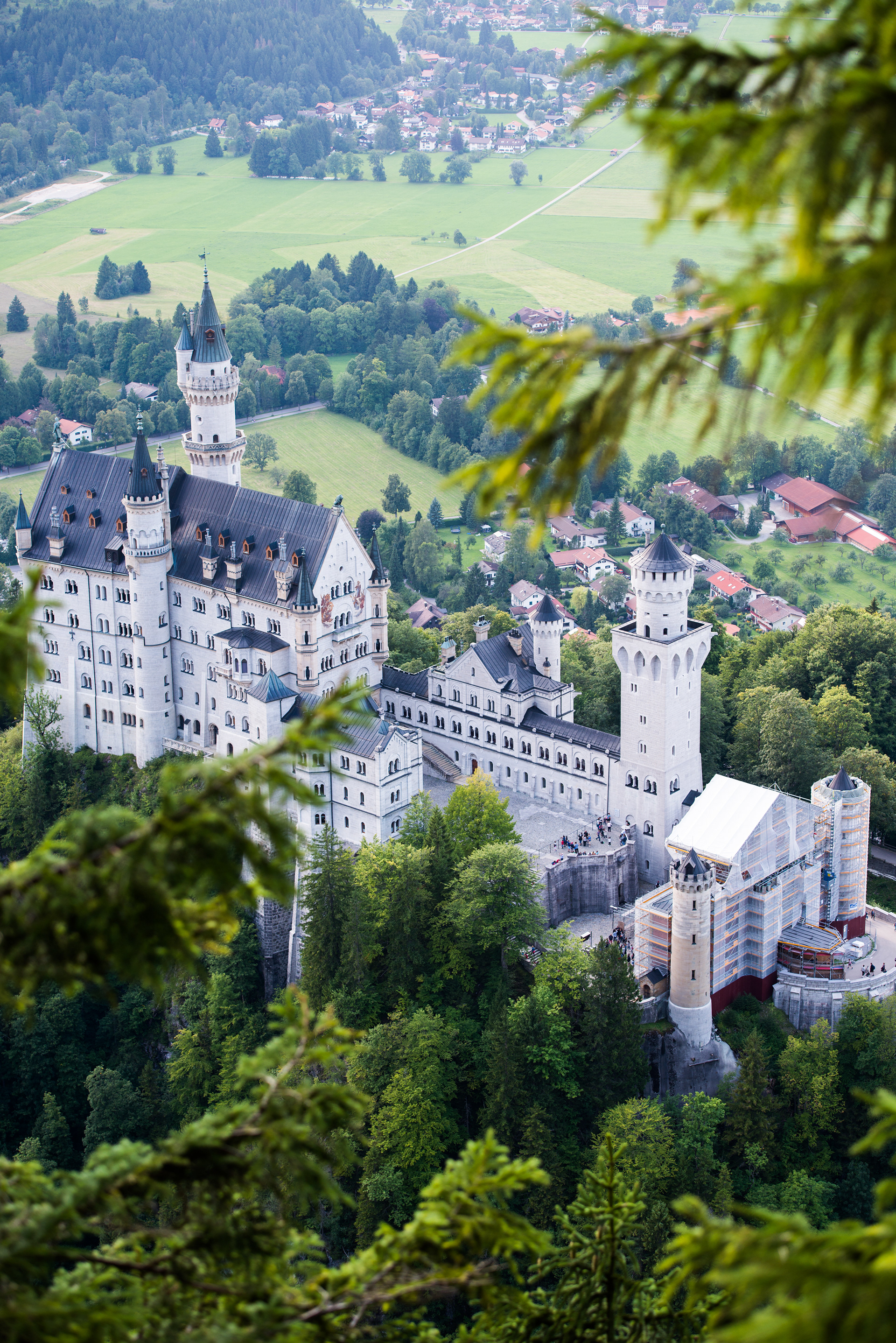 Das Schloss Neuschwanstein steht oberhalb von Hohenschwangau bei Füssen im südlichen Bayern. Der Bau wurde ab 1869 für den bayerischen König Ludwig II. als idealisierte Vorstellung einer Ritterburg aus der Zeit des Mittelalters errichtet.